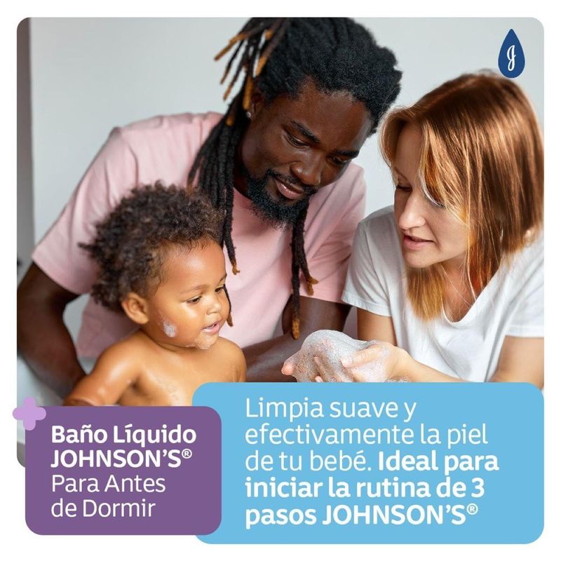 "JOHNSON’S® desarrolló la rutina de 3 pasos para antes de dormir que, como ha sido comprobado*, ayuda a tu bebé a dormirse más rápido y por más tiempo. El ritual se basa en: baño y masaje con los productos de la línea para antes de dormir y un momento tranquilo de cariños con tu bebé. Estos productos contienen la exclusiva esencia NATURALCALM, que libera aromas suaves y relajantes para que tu bebé duerma mejor. Además, están dermatológicamente testeados, son hipoalergénicos y contienen la exclusiva fórmula No Más Lágrimas®. (*Resultados obtenidos con base en la rutina de baño y después del baño del bebé)."