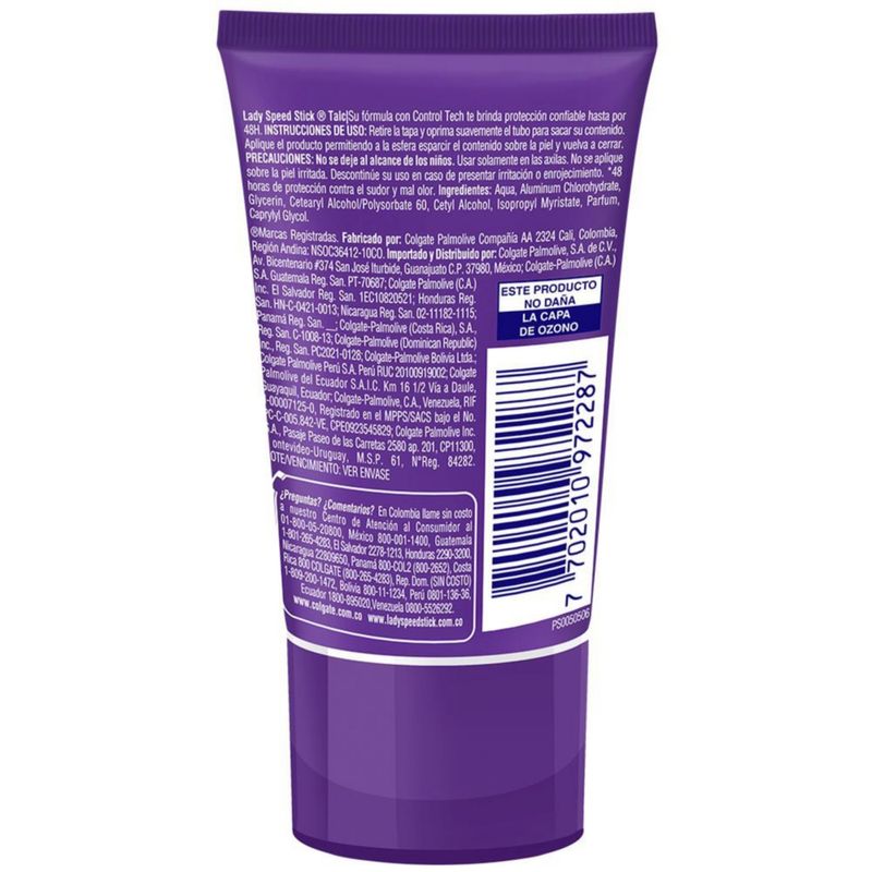 Desodorante lady speed stick crema talco tubo x 30 gr protección infalible contra el sudor y mal olor hasta por 24 horas, 7 días a la semana.
