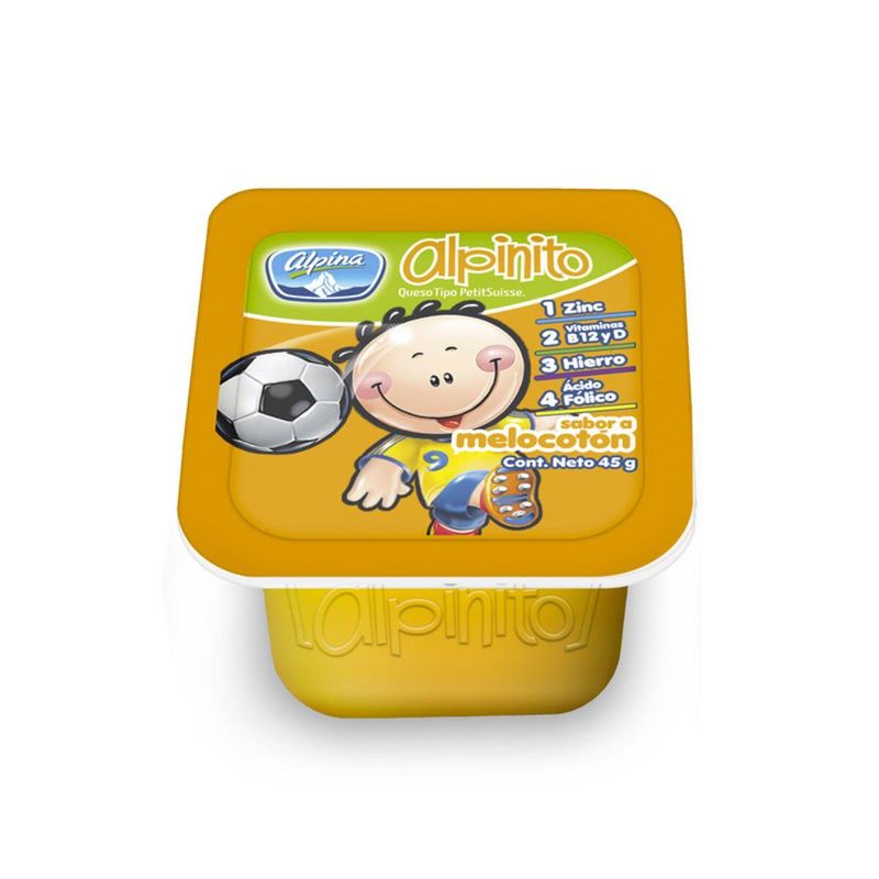 Alpinito Melocoton x 45 Gr aporta hierro, zinc, ácido fólico, vitamina D y vitamina B12 ayudando a mantener huesos fuertes, al desarrollo y crecimiento de los niños.
