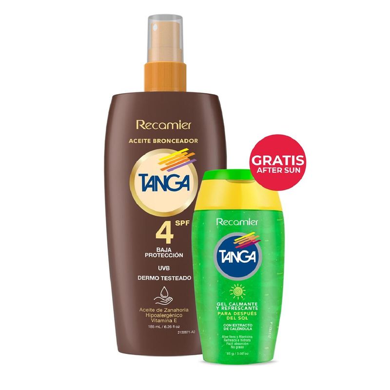 Bronceador Tanga Spf 4 Aceite Spray X 185 Ml Gratis Gel After Sun X 85 Gr
