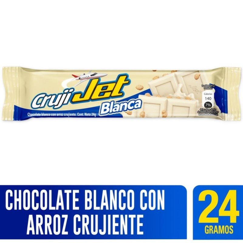 Chocolatina crujijet blanca barra x 24 gr es una deliciosa y con textura cremosa, barra de chocolate con arroz crujiente. Ideal para endulzar tu día.