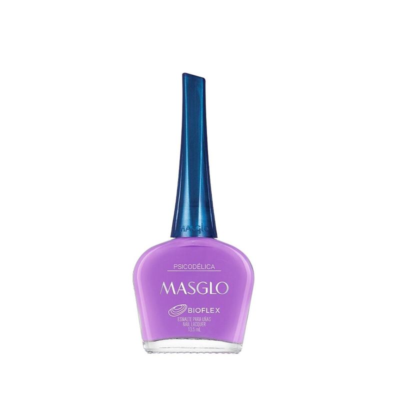 ESMALTE MASGLO PSICODELICA FRASCO X 13.5 ML. Esmalte para uñas de secado rápido, tecnología Bioflex para una máxima duración de hasta 12 días; no requiere lámpara UV/LED, efecto gel. Pincel plano para fácil aplicación. Recuerda aplicar base y brillo para proteger tus uñas y prolongar tu manicura.