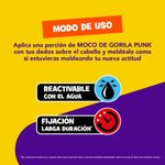 ¡Looks increibles con el gel Moco de Gorila Punk! - Nivel de fijación extrema 10/10 manteniendo el peinado intacto durante horas. - Reactivable con el agua; solo moja tus manos, reactiva el gel y remodela tu cabello - Ideal para que tu peinado luzca y resista cualquier clima. Ideal para los estilos más cool y creativos, Moco de Gorila Punk te permite expresar tu personalidad única y atrevida.