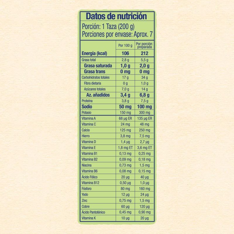 Cereal infantil fortificado para niños a partir de los 24 meses de edad, elaborado con harina de trigo y leche, con Probióticos y 15 Vitaminas y Minerales (incluido el Hierro, Vitaminas A y C, y Zinc). Se puede preparar como batido y también como ingrediente en recetas caseras. Envío a domicilio a nivel nacional. Pide online al mejor precio.