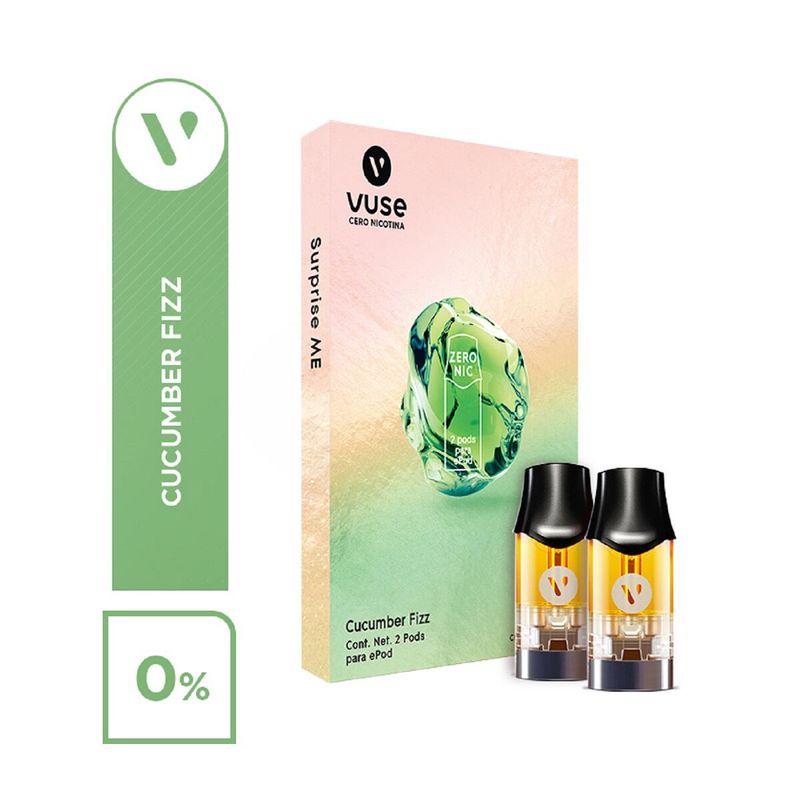 Ideal para quienes buscan una experiencia de vapeo con sabores dulces. Encuentra una mezcla equilibrada entre pepino y unas notas rojas que aportan a su frescura con cucumber fizz. Este sabor está disponible en tres niveles de nicotina para que vivas la experiencia vuse a tu manera: zero nicotina / 0%. 18 mg / 1.6 %. 34 mg / 3%. Contiene 2 pods por pack. Hasta 1,900 puffs/pack (2 pods). La cantidad de 1,900 puffs/pack puede variar segun el hábito de uso de cada consumidor.