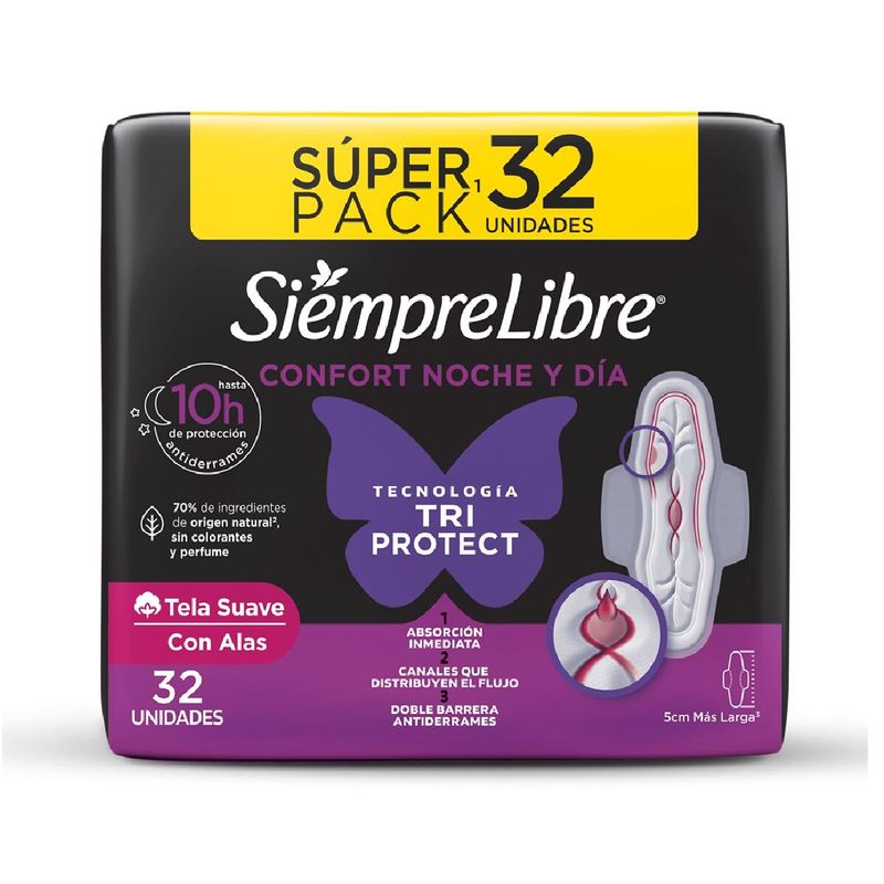 Toalla Siempre Libre Confort Noche Y Dia Alas X 32 Und
