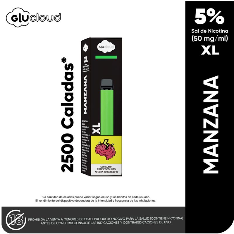 Vapeador Glucloud Manzana Xl 5% X 2500 Puffs