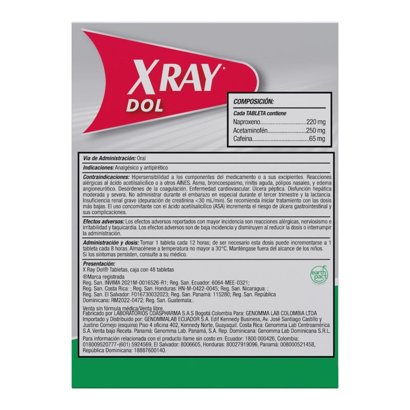 XRAY DOL es un medicamento analgésico y antiinflamatorio indicado para el alivio del dolor leve a moderado, como dolores de cabeza, dolores musculares, dolores menstruales, dolores dentales y de la artritis. Contiene como principios activos el paracetamol y el diclofenaco, que actúan en conjunto para reducir el dolor y la inflamación. Es importante seguir las indicaciones del médico y la dosificación adecuada según la edad y las condiciones de salud de cada persona.